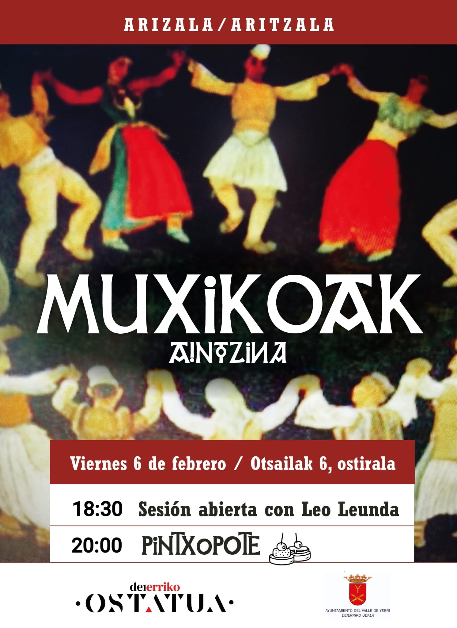 Muxikoak es una danza en círculo compuesta de pasos reglados por la tradición, en la que se describen arcos sobre la línea imaginaria que delimita el círculo. Muxikoak es uno de los jauzis más largos y, seguramente, el más extendido. Como ocurre con otros jauzis, Muxikoak está compuesto por el propio jauzi y un alargamiento llamado segida (lit. continuación). Esta segida puede cambiar según los pueblos o los músicos.