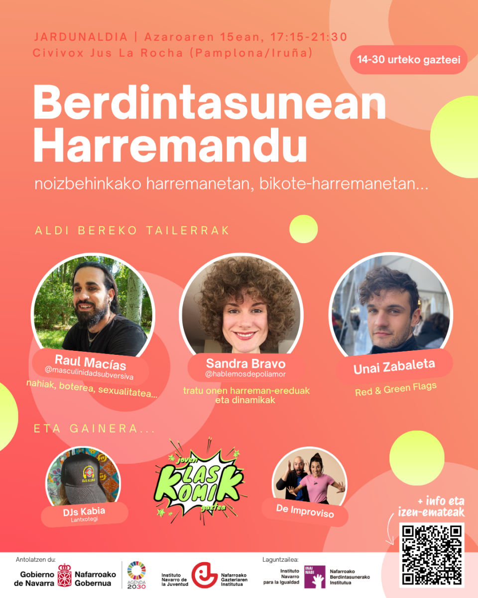 Berdintasunezko harremanak sustatzeko ikuspegitik, edukia eta dibertsioa mezuarekin nahasten dituen jardunaldi bat proposatzen dugu, larunbat arratsaldea pasatzeko aukera bikaina.