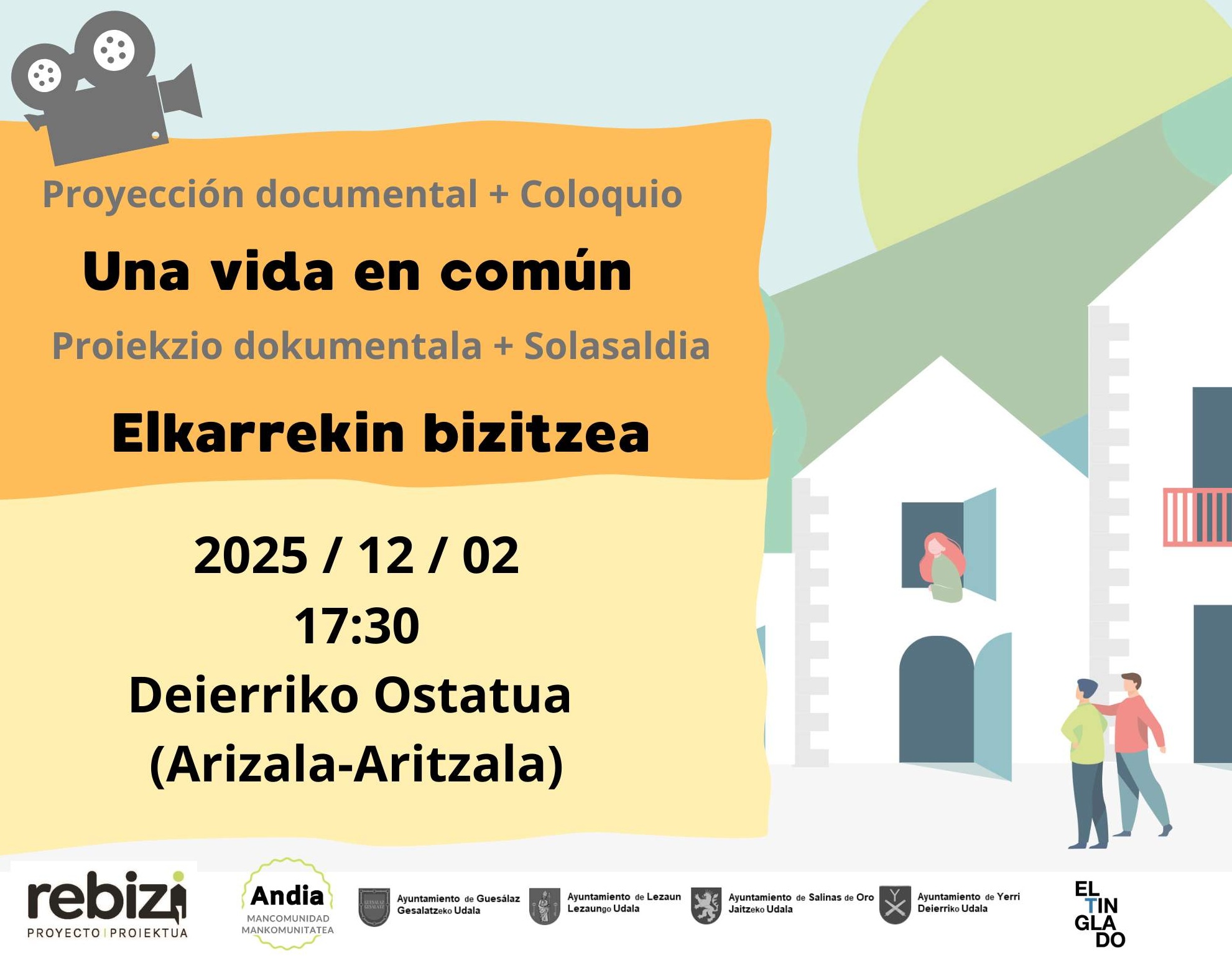 Saio berezi batera gonbidatzen zaitugu. Bertan, "Una vida en común" dokumentala proiektatuko dugu, eta Mikel Pau zuzendariarekin, El Tinglado Arkitektura Kolektiboko zuzendariarekin, elkarrizketa-gune bat irekiko dugu, eredu horri eta gure inguruan eskain ditzakeen aukerei buruz gehiago jakiteko.